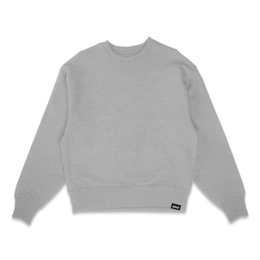 • Backside of a heather grey crewneck sweater for bikers with a large sënd logo print